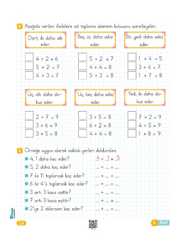 4, 1 daha kaç eder? ...... + ...... = ......