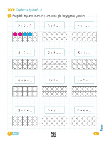 1 Aşağıdaki toplama işlemlerini örnekteki gibi boyayarak yapalım.