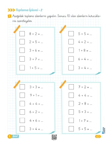 1 Aşağıdaki toplama işlemlerini yapalım. Sonucu 10 olan işlemlerin kutucukla-