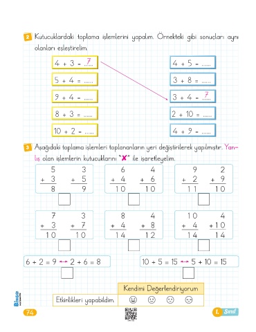 2 Kutucuklardaki toplama işlemlerini yapalım. Örnekteki gibi sonuçları aynı