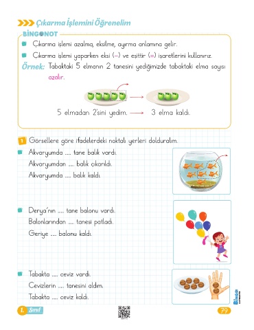 Çıkarma işlemi yaparken eksi (-) ve eşittir (=) işaretlerini kullanırız.