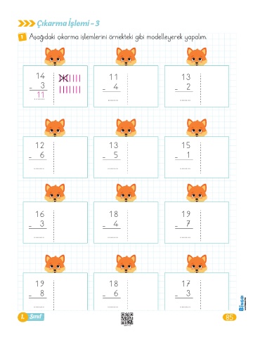 1 Aşağıdaki çıkarma işlemlerini örnekteki gibi modelleyerek yapalım.