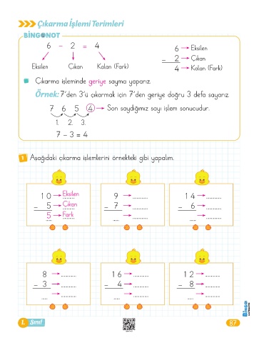 1 Aşağıdaki çıkarma işlemlerini örnekteki gibi yapalım.