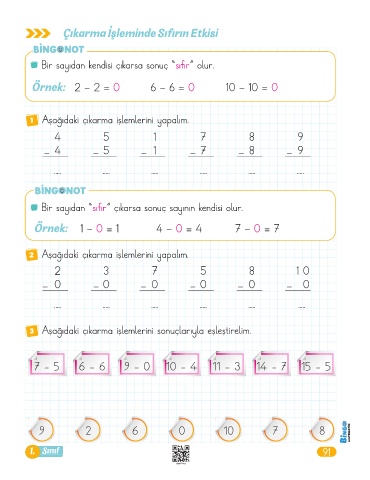 3 Aşağıdaki çıkarma işlemlerini sonuçlarıyla eşleştirelim.