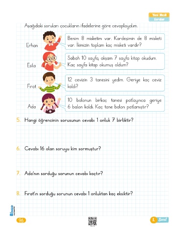 8. Fırat’ın sorduğu sorunun cevabı 1 onluktan kaç eksiktir?