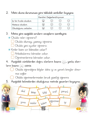 2. Metni okuma durumunuza göre tablodaki sembolleri boyayınız.