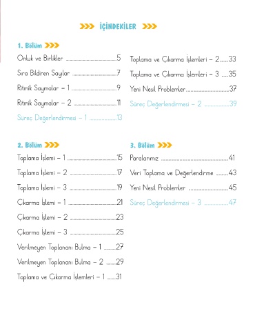 Sıra Bildiren Sayılar .....................................................7 Toplama ve Çıkarma İşlemleri - 3 .......35