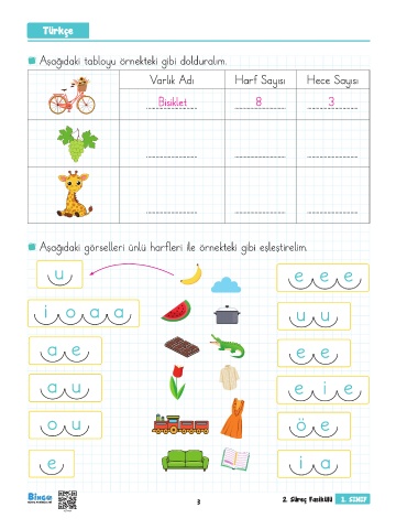 Aşağıdaki görselleri ünlü harfleri ile örnekteki gibi eşleştirelim.