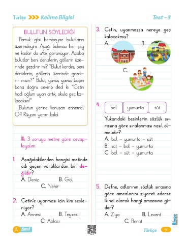 İlk 3 soruyu metne göre cevap- A. bal - yumurta - süt