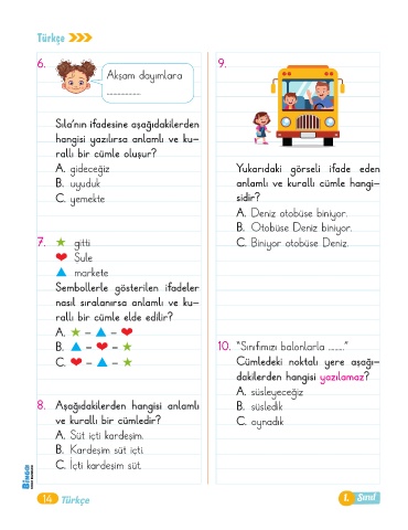 7. ★ gitti C. Biniyor otobüse Deniz.