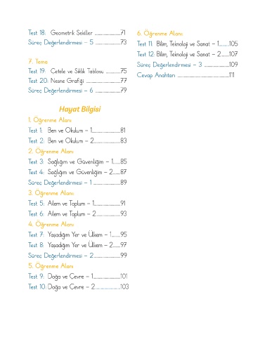 Test 18: Geometrik Şekiller ................................71 6. Öğrenme Alanı: