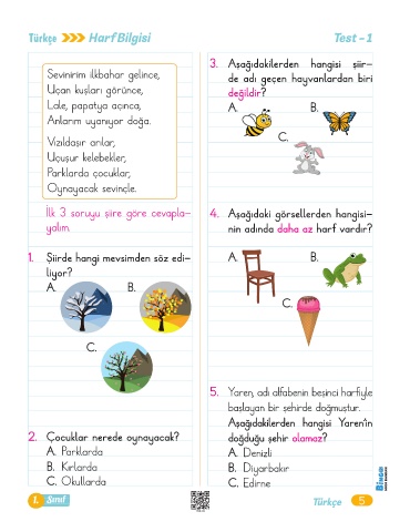 1. Şiirde hangi mevsimden söz edi- A. B.