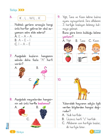 6. K ... L ... M L ... K 9. Yiğit, Tuna ve Kaan kelime bulma