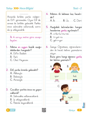 ......................... 4. Metnin ilk kelimesi kaç heceli-