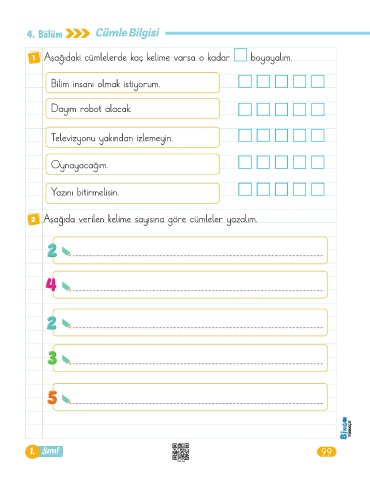 1 Aşağıdaki cümlelerde kaç kelime varsa o kadar ■ boyayalım.