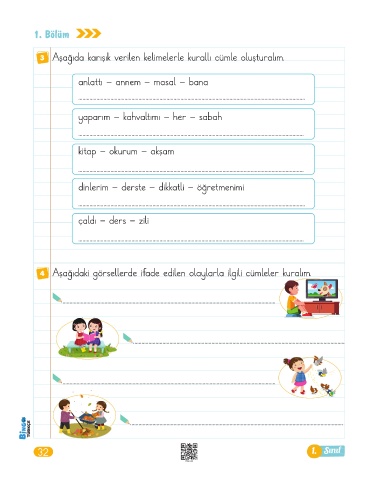 3 Aşağıda karışık verilen kelimelerle kurallı cümle oluşturalım.