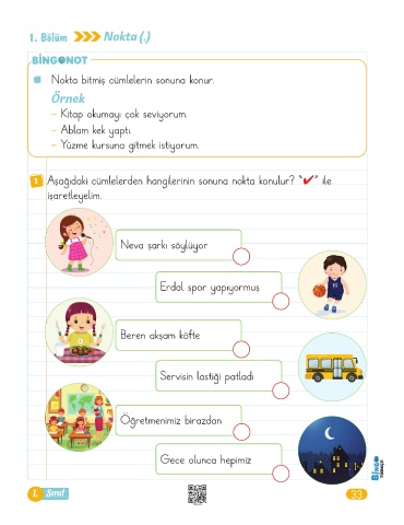 1 Aşağıdaki cümlelerden hangilerinin sonuna nokta konulur? “✔” ile