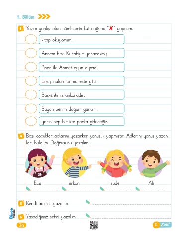 4 Bazı çocuklar adlarını yazarken yanlışlık yapmıştır. Adlarını yanlış yazan-