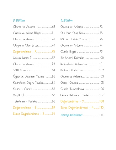 Süreç Değerlendirme - 3 ...........91 Cevap Anahtarı ........................112