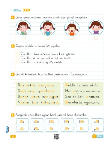 6 Şiirdeki kelimelerin bazı harfleri yazılmamıştır. Tamamlayalım.