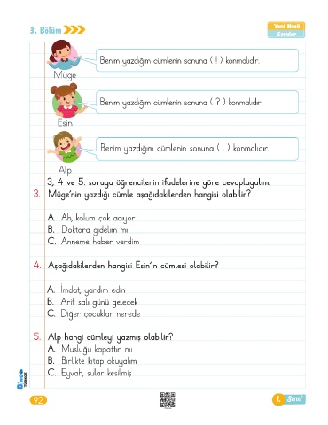 3, 4 ve 5. soruyu öğrencilerin ifadelerine göre cevaplayalım.