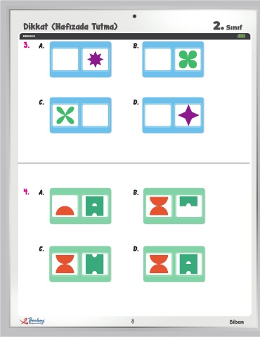 Dikkat (Hafızada Tutma) 2. Sınıf 3. A. B. C. D. 4. A. B. C. D. 8 Bilsem