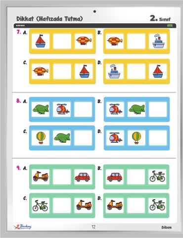 Dikkat (Hafızada Tutma) 2. Sınıf 7. A. B. C. D. 8. A. B. C. D. 9. A. B. C. D. 12 Bilsem