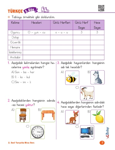 1. Aşağıdaki kelimelerden hangisi he- 3. Aşağıdaki hayvanlardan hangisinin