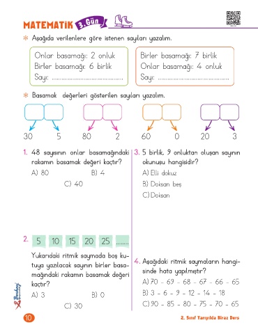 1. 48 sayısının onlar basamağındaki 3. 5 birlik, 9 onluktan oluşan sayının