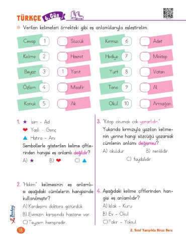 Verilen kelimeleri örnekteki gibi eş anlamlılarıyla eşleştirelim.