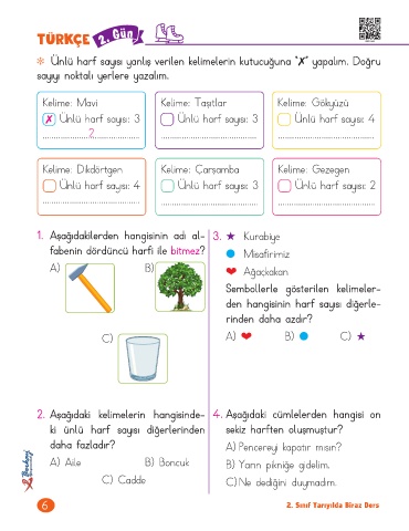 Ünlü harf sayısı yanlış verilen kelimelerin kutucuğuna “✗” yapalım. Doğru