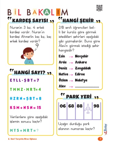 kardeşi vardır. Nuran'ın li bir kurala göre görmek