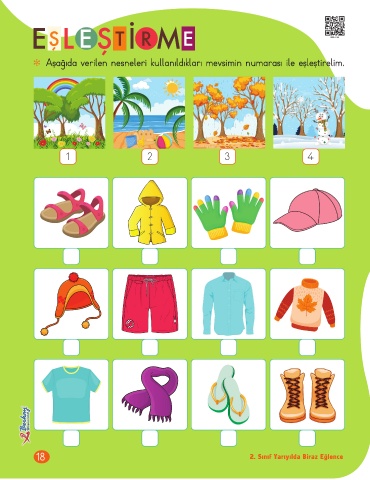 İ M E LŞ T R E 2BE-018 E Ş Aşağıda verilen nesneleri kullanıldıkları mevsimin numarası ile eşleştirelim. 1 2 3 4 18 2. Sınıf Yarıyılda Biraz Eğlence