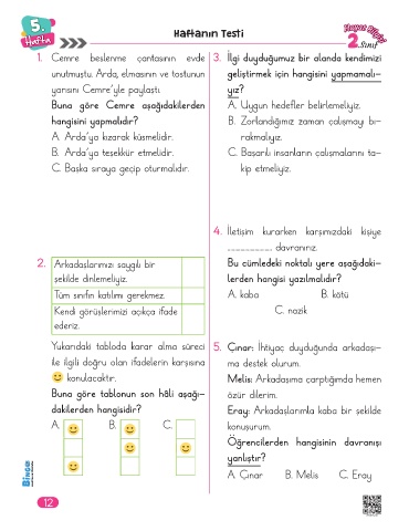 1. Cemre beslenme çantasının evde 3. İlgi duyduğumuz bir alanda kendimizi
