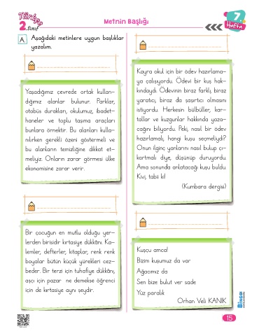 Yaşadığımız çevrede ortak kullan- kındaydı. Ödevinin biraz farklı, biraz