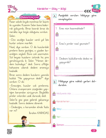 CİVANPERÇEMİ A. Aşağıdaki soruları hikâyeye göre