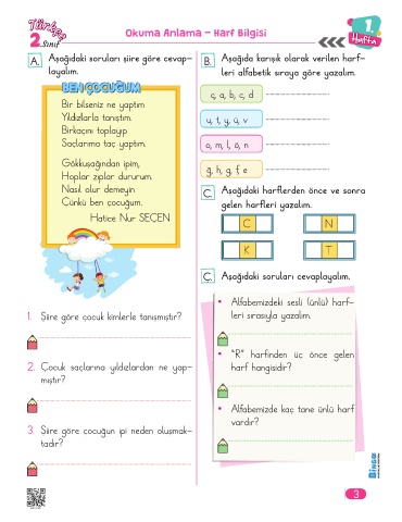 A. Aşağıdaki soruları şiire göre cevap- B. Aşağıda karışık olarak verilen harf-