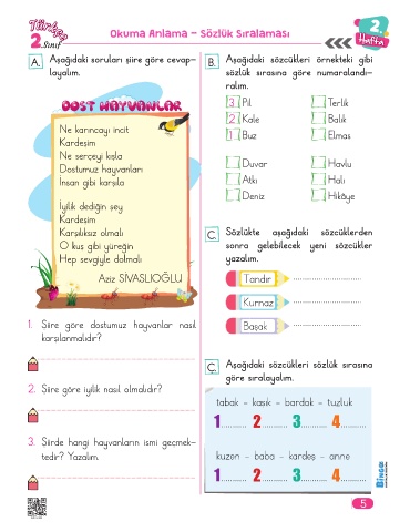 A. Aşağıdaki soruları şiire göre cevap- B. Aşağıdaki sözcükleri örnekteki gibi