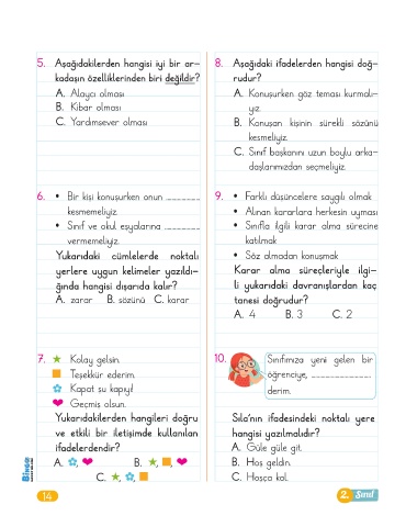 7. ★ Kolay gelsin. 10. Sınıfımıza yeni gelen bir