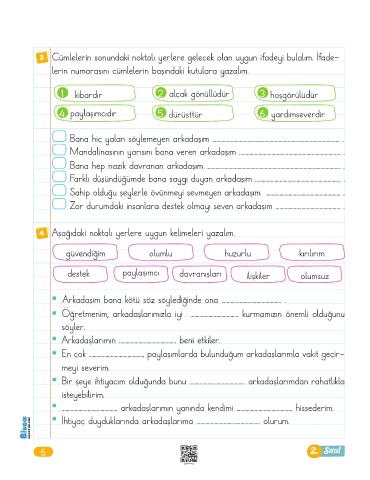 4 paylaşımcıdır 5 dürüsttür 6 yardımseverdir