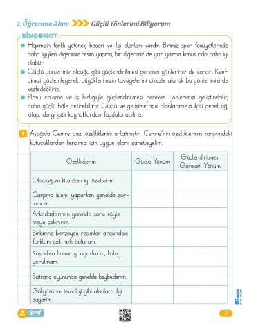1. Öğrenme Alanı Güçlü Yönlerimi Biliyorum