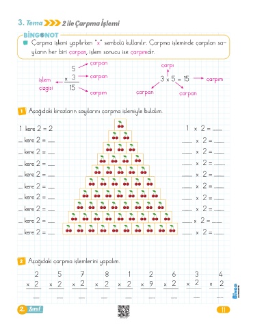 1 Aşağıdaki kirazların sayılarını çarpma işlemiyle bulalım.