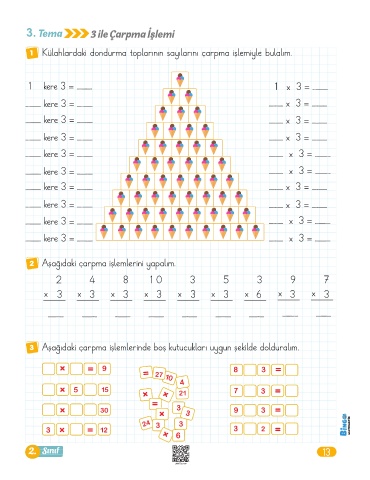 1 kere 3 = ............... 1 x 3 = ...............