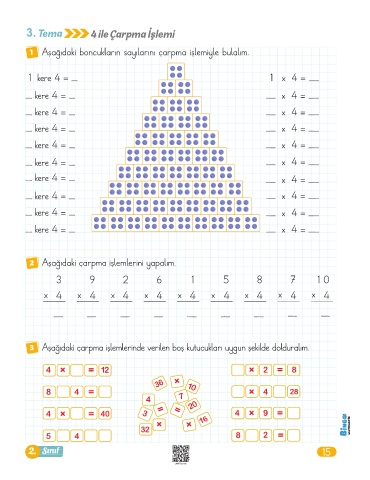 3 Aşağıdaki çarpma işlemlerinde verilen boş kutucukları uygun şekilde dolduralım.