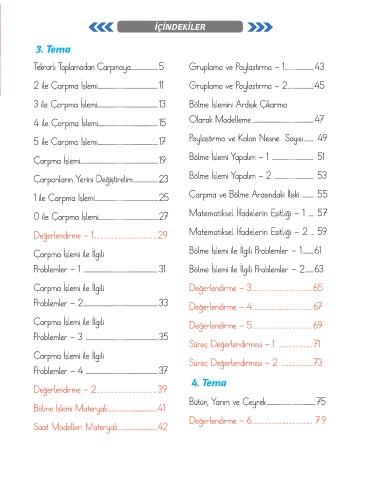 2 ile Çarpma İşlemi ............................................................11 Gruplama ve Paylaştırma - 2 ..........................45