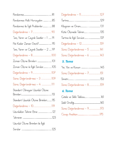 Tam, Yarım ve Çeyrek Saatler - 2 ........97 Süreç Değerlendirmesi - 5 ......................141