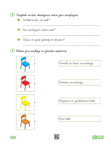 3 Metne göre sandalye ve görevleri eşleştiriniz.