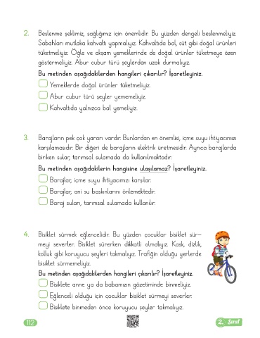 2. Beslenme şeklimiz, sağlığımız için önemlidir. Bu yüzden dengeli beslenmeliyiz.