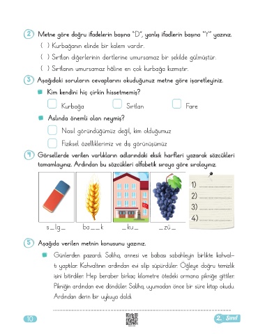 2 Metne göre doğru ifadelerin başına “D”, yanlış ifadlerin başına “Y” yazınız.
