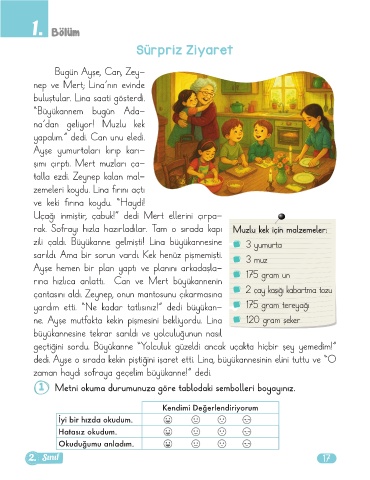 dedi. Ayşe o sırada kekin piştiğini işaret etti. Lina, büyükannesinin elini tuttu ve “O